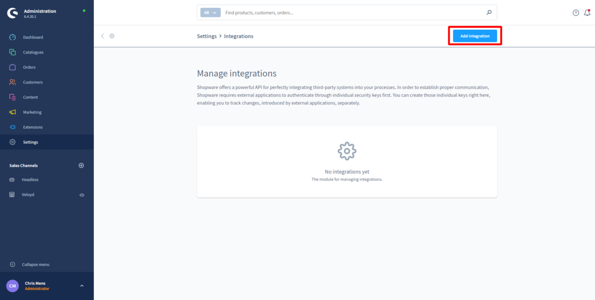 - Klik op “Add Integration”