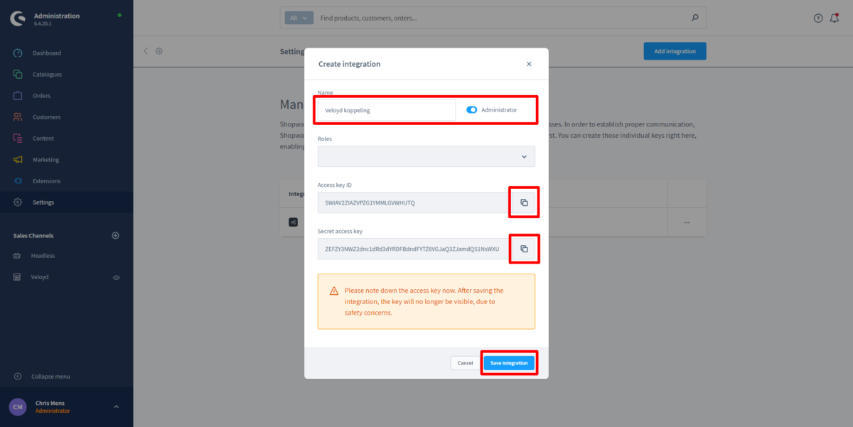 - Klik op “Save Integration”