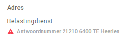 Let op: bij een antwoordnummer zal je altijd de melding (rood driehoekje) krijgen dat het adres niet klopt. In dit geval mag je deze melding negeren.
