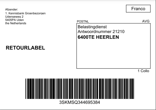 Zodra je de zending bevestigt, kun je het verzendlabel uitprinten en bevestigen op de envelop of het pakket. Op het verzendlabel staat dan duidelijk ‘Retourlabel’ inclusief een unieke Track & Trace barcode. Zo kun je de zending altijd volgen en is het voor de ontvanger duidelijk herkenbaar.