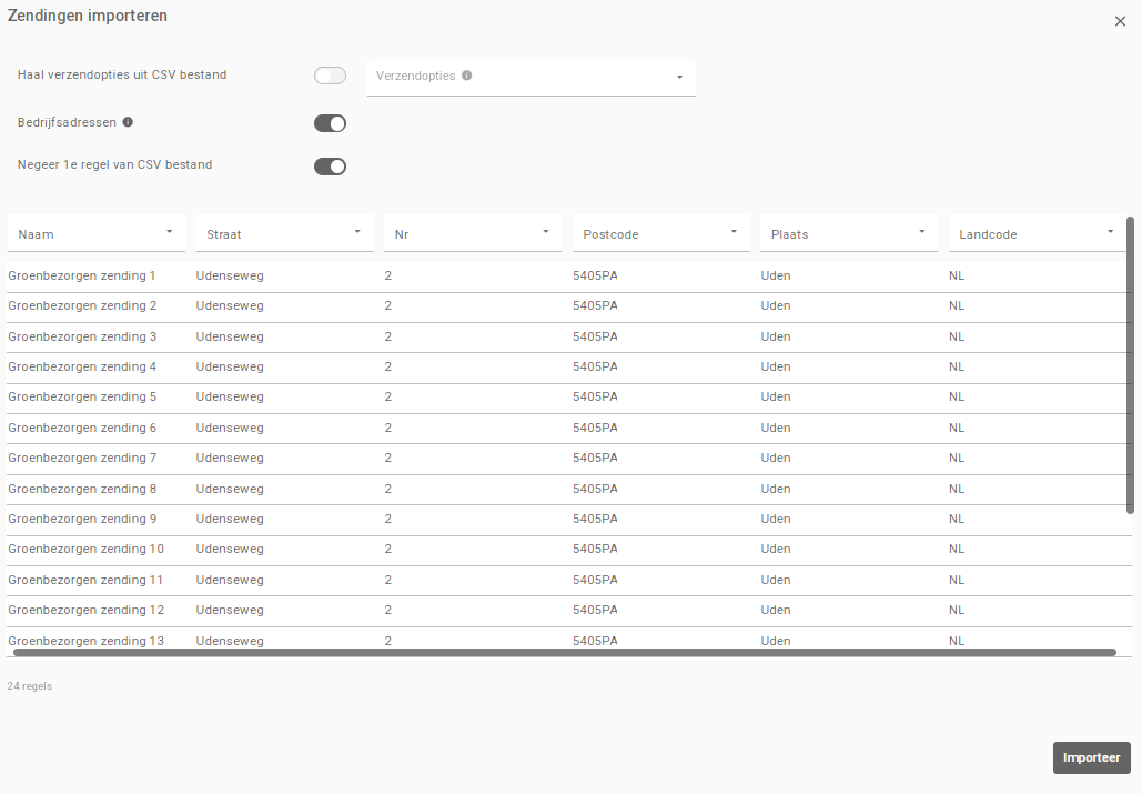 Klik op ‘Importeer’ om alle zendingen toe te voegen aan je overzicht.