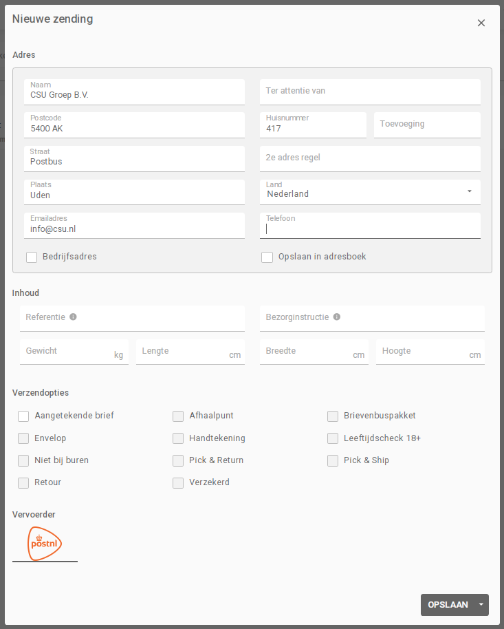 Het aanmaken van een zending naar een postbus werkt vrijwel hetzelfde als het aanmaken van een standaardzending. Het verschil zit in het invullen van de adresgegevens.