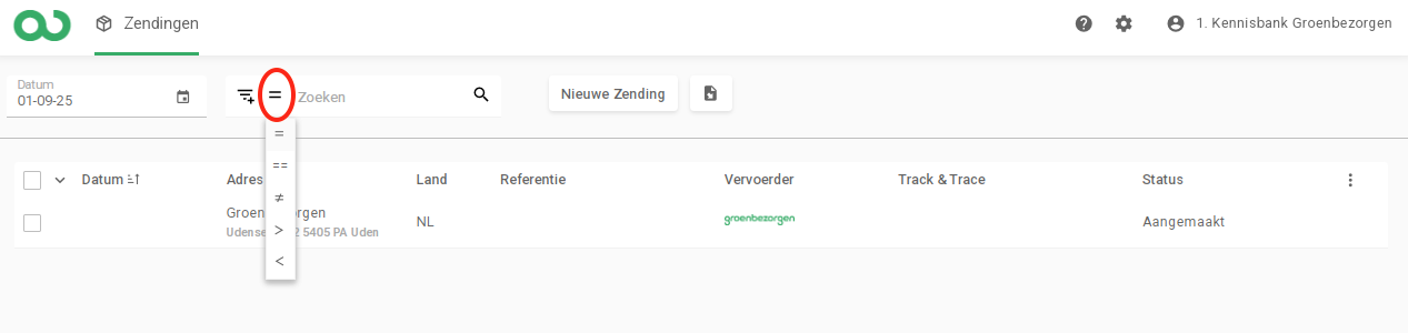 Zoek en filter eenvoudig je zendingen in het Groenbezorgen verzendportaal. Gebruik de datepicker, kolomfilters, zoekvelden en wiskundesymbolen voor snel resultaat. Ideaal voor terugvinden of beheren van zendingen.